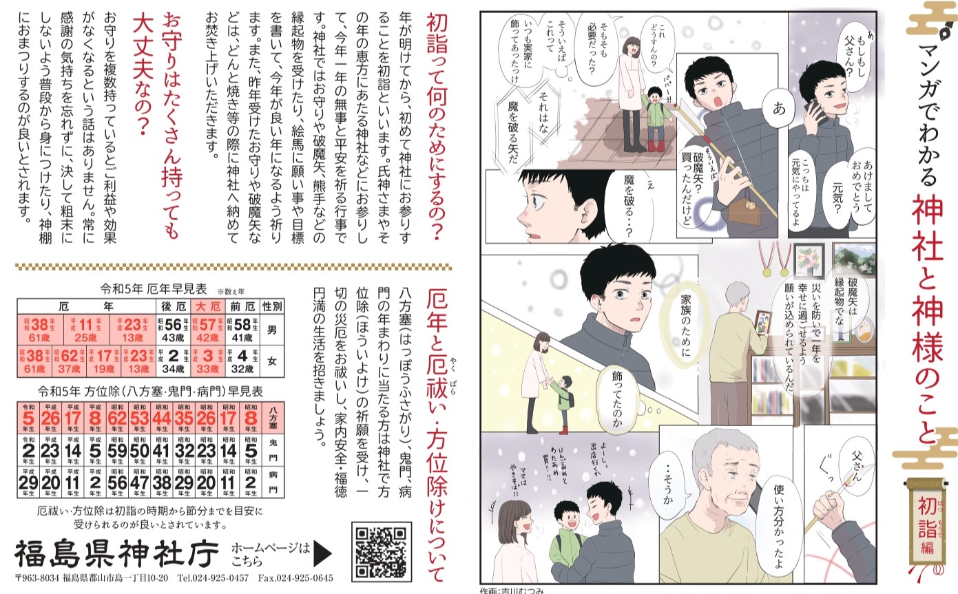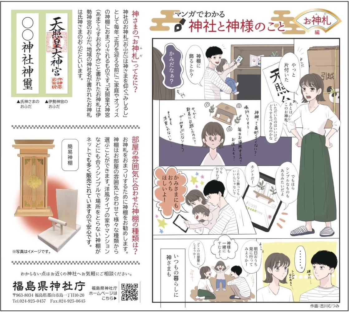 昨年に引き続き、「マンガでわかる神社と神様のこと」お神札(おふだ)編、初詣編、厄祓い編が新聞2紙と県内フリーペーパー各誌に掲載されます。