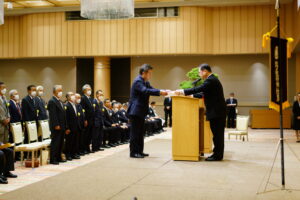 神事の最後に神宮大麻及び暦が丹治庁長から県内支部を代表して金土重順いわき支部長へ授けられ、引き続き神宮大麻暦頒布功労者表彰状伝達が行われた。