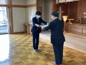 新任神職へ丹治正博庁長より辞令が伝達されました。