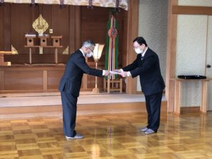 神職任用辞令交付式 月別 選択してください 2025年11月 2025年10月 2025年8月 2025年7月 2025年6月 2025年5月 2025年4月 2025年3月 2025年2月 2025年1月 2024年10月 2024年9月 2024年8月 2024年7月 2024年6月 2024年3月 2024年2月 2023年12月 2023年11月 2023年10月 2023年9月 2023年8月 2023年7月 2023年6月 2023年5月 2023年4月 2023年3月 2023年2月 2023年1月 2022年11月 2022年10月 2022年9月 2022年8月 2022年7月 2022年6月 2022年5月 2022年4月 2022年3月 2021年10月 2021年9月 2021年8月 2021年7月 2021年6月 2021年5月 2021年4月 2021年3月 2021年2月 2020年11月 2020年10月 2020年9月 2020年8月 2020年7月 2020年6月 2020年5月 2020年4月 2020年3月 2020年2月 2020年1月 2019年11月 2019年9月 2019年8月 2019年2月 2019年1月 2018年9月 2018年8月 カテゴリー別 選択して下さい 神社庁報 2022年5月9日 去る4月22日・5月6日に福島県神社庁2階神殿にて、神職任用辞令交付式が執り行われました。 以下の方々が新たに神職に任用されました。 4月22日 相馬小高神社禰宜・相馬胤昌氏(4月20日付任用) 5月6日 安積國造神社権禰宜・加藤葵氏、石都々古別神社権禰宜・吉田町子氏(5月1日付任用) 各新任神職へ丹治正博庁長より辞令が伝達されました。 « 前の記事へ 次の記事へ »
