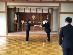 神職任用辞令交付式 月別 選択してください 2025年11月 2025年10月 2025年8月 2025年7月 2025年6月 2025年5月 2025年4月 2025年3月 2025年2月 2025年1月 2024年10月 2024年9月 2024年8月 2024年7月 2024年6月 2024年3月 2024年2月 2023年12月 2023年11月 2023年10月 2023年9月 2023年8月 2023年7月 2023年6月 2023年5月 2023年4月 2023年3月 2023年2月 2023年1月 2022年11月 2022年10月 2022年9月 2022年8月 2022年7月 2022年6月 2022年5月 2022年4月 2022年3月 2021年10月 2021年9月 2021年8月 2021年7月 2021年6月 2021年5月 2021年4月 2021年3月 2021年2月 2020年11月 2020年10月 2020年9月 2020年8月 2020年7月 2020年6月 2020年5月 2020年4月 2020年3月 2020年2月 2020年1月 2019年11月 2019年9月 2019年8月 2019年2月 2019年1月 2018年9月 2018年8月 カテゴリー別 選択して下さい 神社庁報 2022年8月12日 去る7月21日・8月10日に福島県神社庁2階神殿にて、神職任用辞令交付式が執り行われました。 以下の方々が新たに神職に任用されました。 7月21日 諏訪神社権禰宜・小名川 和歌子 氏(7月10日付任用) 8月10日 男山八幡神社権禰宜・西 愛未 氏(8月1日付任用) 各新任神職へ丹治正博庁長より辞令が伝達されました。 « 前の記事へ 次の記事へ »