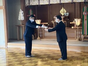 神職任用辞令交付式 月別 選択してください 2025年11月 2025年10月 2025年8月 2025年7月 2025年6月 2025年5月 2025年4月 2025年3月 2025年2月 2025年1月 2024年10月 2024年9月 2024年8月 2024年7月 2024年6月 2024年3月 2024年2月 2023年12月 2023年11月 2023年10月 2023年9月 2023年8月 2023年7月 2023年6月 2023年5月 2023年4月 2023年3月 2023年2月 2023年1月 2022年11月 2022年10月 2022年9月 2022年8月 2022年7月 2022年6月 2022年5月 2022年4月 2022年3月 2021年10月 2021年9月 2021年8月 2021年7月 2021年6月 2021年5月 2021年4月 2021年3月 2021年2月 2020年11月 2020年10月 2020年9月 2020年8月 2020年7月 2020年6月 2020年5月 2020年4月 2020年3月 2020年2月 2020年1月 2019年11月 2019年9月 2019年8月 2019年2月 2019年1月 2018年9月 2018年8月 カテゴリー別 選択して下さい 神社庁報 2022年10月4日 去る10月3日に福島県神社庁2階神殿にて、神職任用辞令交付式が執り行われました。 以下の方が新たに神職に任用されました。 三吉神社権禰宜・大津文哉 氏(10月1日付任用) 新任神職へ丹治正博庁長より辞令が伝達されました。 « 前の記事へ 次の記事へ »