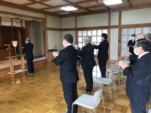 神職身分二級上證書伝達式 月別 選択してください 2025年11月 2025年10月 2025年8月 2025年7月 2025年6月 2025年5月 2025年4月 2025年3月 2025年2月 2025年1月 2024年10月 2024年9月 2024年8月 2024年7月 2024年6月 2024年3月 2024年2月 2023年12月 2023年11月 2023年10月 2023年9月 2023年8月 2023年7月 2023年6月 2023年5月 2023年4月 2023年3月 2023年2月 2023年1月 2022年11月 2022年10月 2022年9月 2022年8月 2022年7月 2022年6月 2022年5月 2022年4月 2022年3月 2021年10月 2021年9月 2021年8月 2021年7月 2021年6月 2021年5月 2021年4月 2021年3月 2021年2月 2020年11月 2020年10月 2020年9月 2020年8月 2020年7月 2020年6月 2020年5月 2020年4月 2020年3月 2020年2月 2020年1月 2019年11月 2019年9月 2019年8月 2019年2月 2019年1月 2018年9月 2018年8月 カテゴリー別 選択して下さい 神社庁報 2022年9月20日 9月13日午後0時より神社庁神殿において、昇級神職と各奉仕神社役員参列のもと、神職身分二級上證書伝達式が執行されました。 9月10日付にて、4名の神職が二級上神職となりました。 丹治庁長より身分證書が伝達された後、昇級神職を代表して磐梯神社・深谷義彦宮司によって誓いのことばが奏上されました。 « 前の記事へ 次の記事へ »