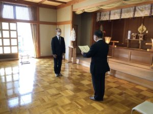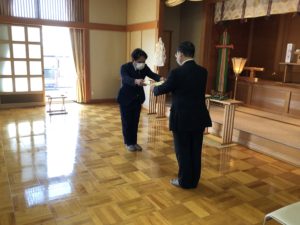 神職身分二級證書伝達式 月別 選択してください 2025年11月 2025年10月 2025年8月 2025年7月 2025年6月 2025年5月 2025年4月 2025年3月 2025年2月 2025年1月 2024年10月 2024年9月 2024年8月 2024年7月 2024年6月 2024年3月 2024年2月 2023年12月 2023年11月 2023年10月 2023年9月 2023年8月 2023年7月 2023年6月 2023年5月 2023年4月 2023年3月 2023年2月 2023年1月 2022年11月 2022年10月 2022年9月 2022年8月 2022年7月 2022年6月 2022年5月 2022年4月 2022年3月 2021年10月 2021年9月 2021年8月 2021年7月 2021年6月 2021年5月 2021年4月 2021年3月 2021年2月 2020年11月 2020年10月 2020年9月 2020年8月 2020年7月 2020年6月 2020年5月 2020年4月 2020年3月 2020年2月 2020年1月 2019年11月 2019年9月 2019年8月 2019年2月 2019年1月 2018年9月 2018年8月 カテゴリー別 選択して下さい 神社庁報 2022年4月12日 4月8日午前11時より神社庁神殿において、昇級神職7名と各奉仕神社役員参列のもと、神職身分二級證書伝達式が執行されました。 3月25日付にて、8名の神職が二級神職となりました。 丹治庁長より身分證書が伝達された後、昇級神職を代表して白和瀬神社・本田辰男宮司によって誓いのことばが奏上されました。 « 前の記事へ 次の記事へ »